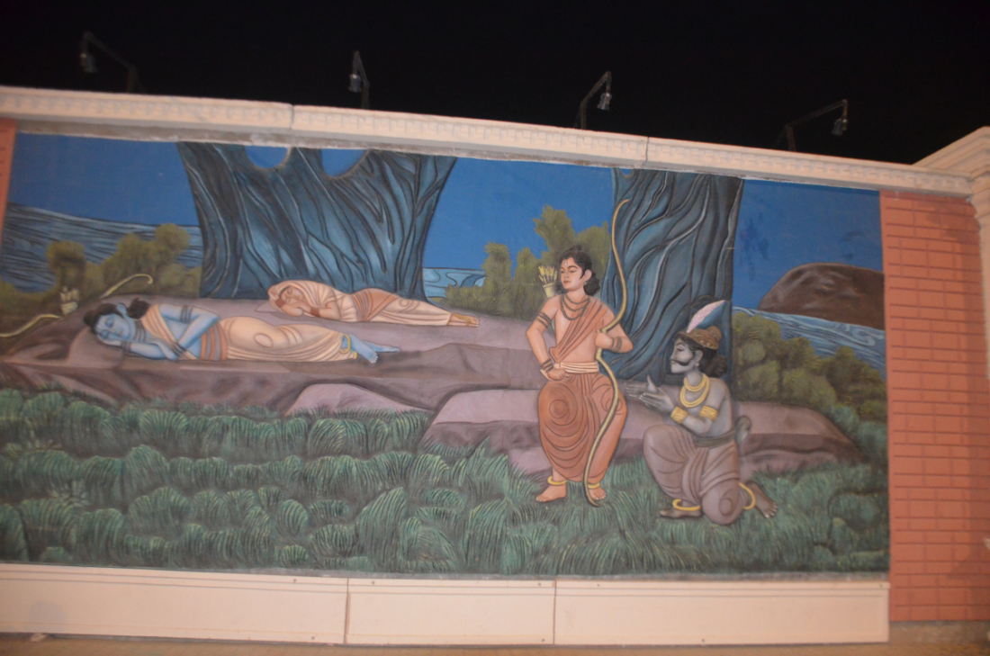 अयोध्या क्षेत्रका सडकहरूमा श्रीरामसँग जोडिएका विभिन्न कलात्मक तस्विरहरू भित्तामा कुदिएका छन्।
