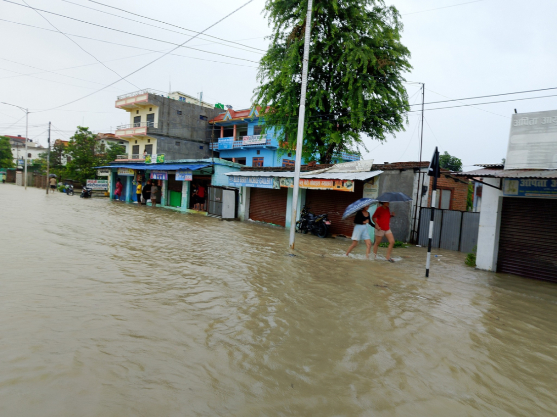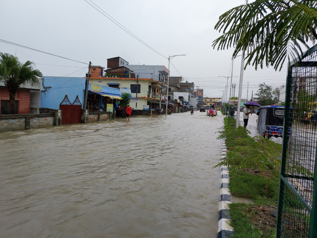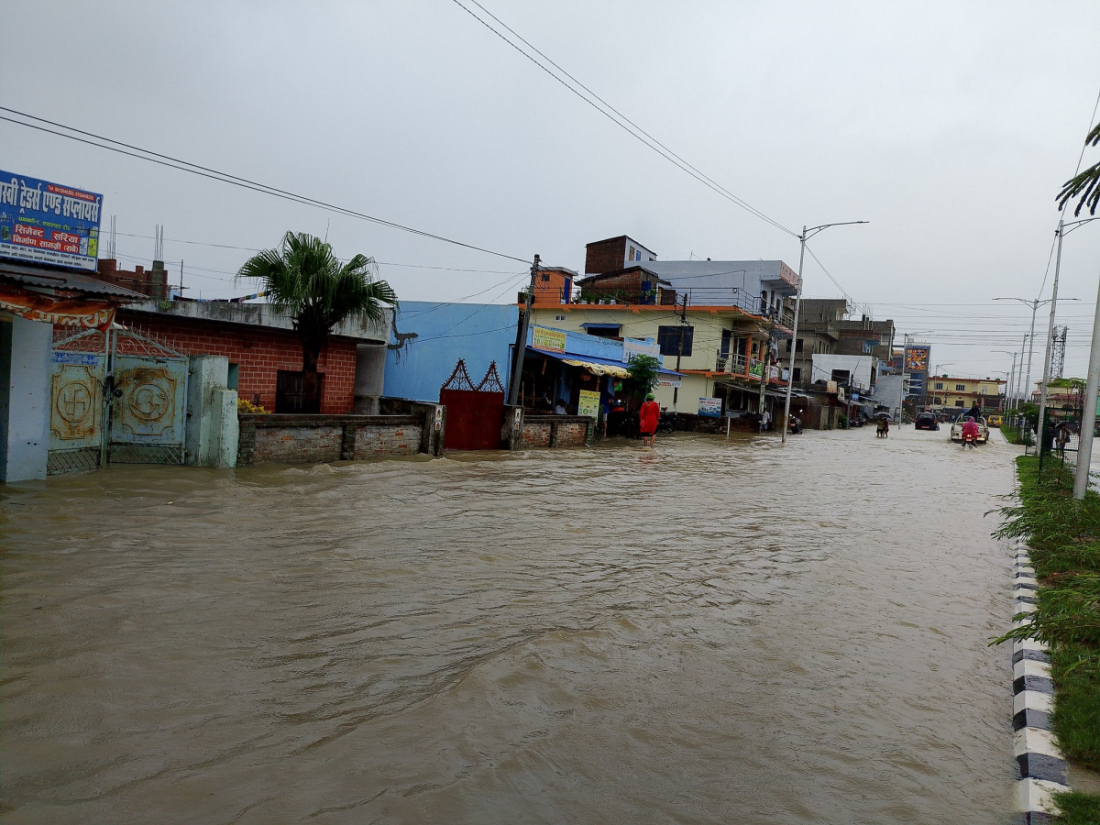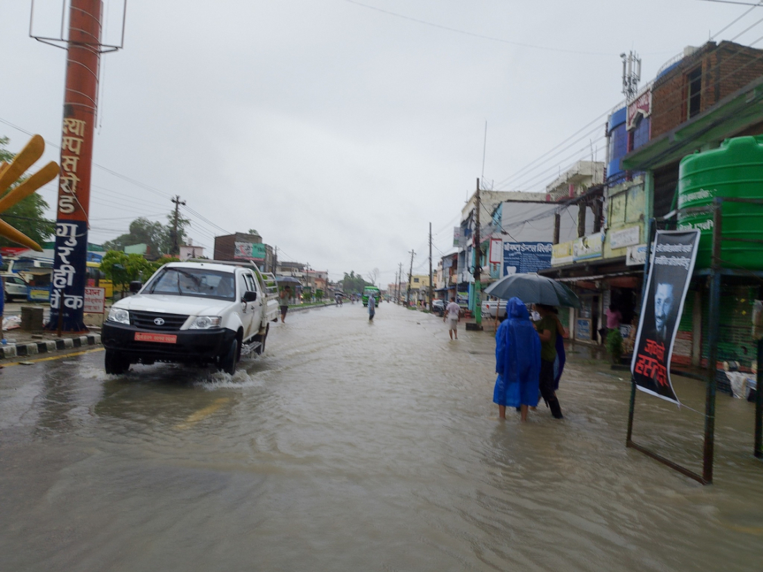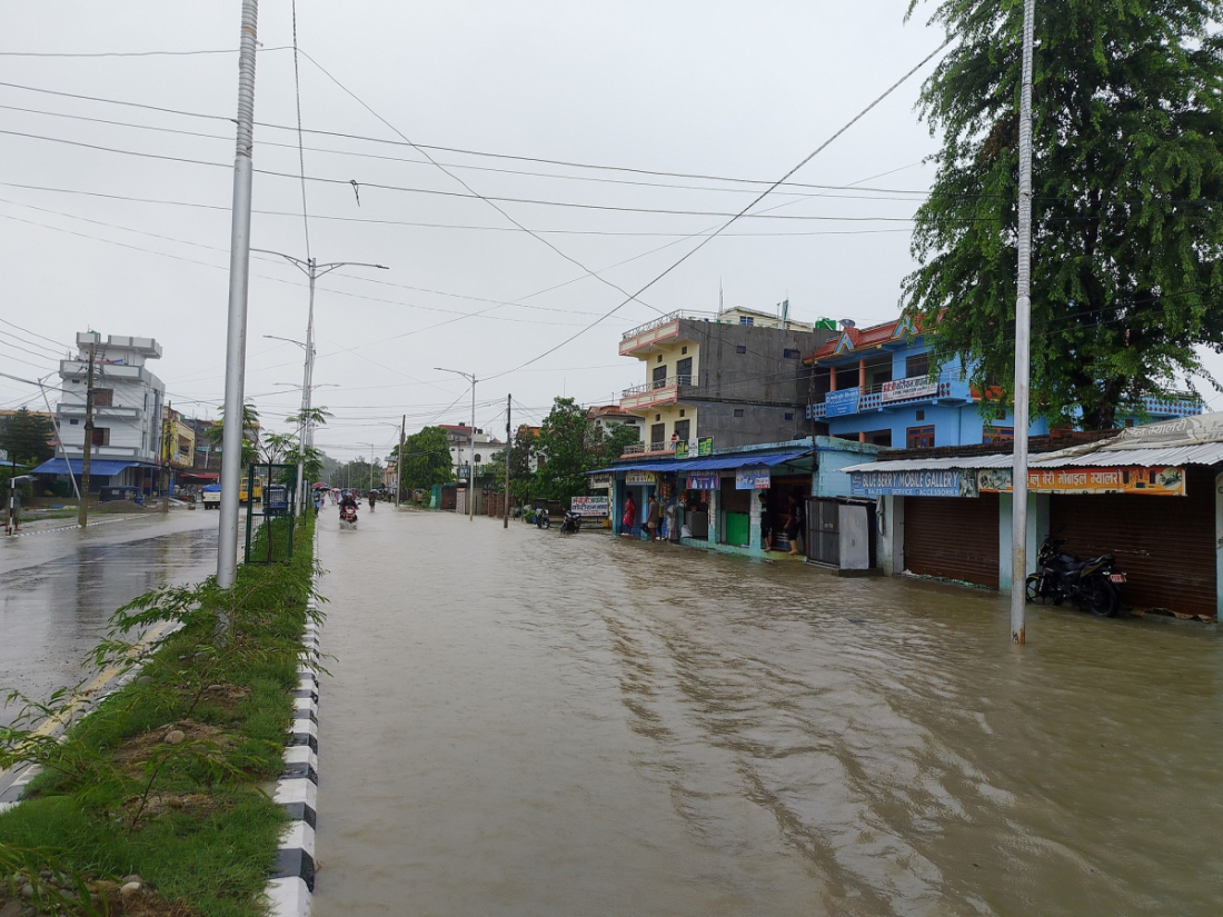 सोमवार बिहानदेखिको वर्षका कारण धनगढी जलमग्न भएको छ।