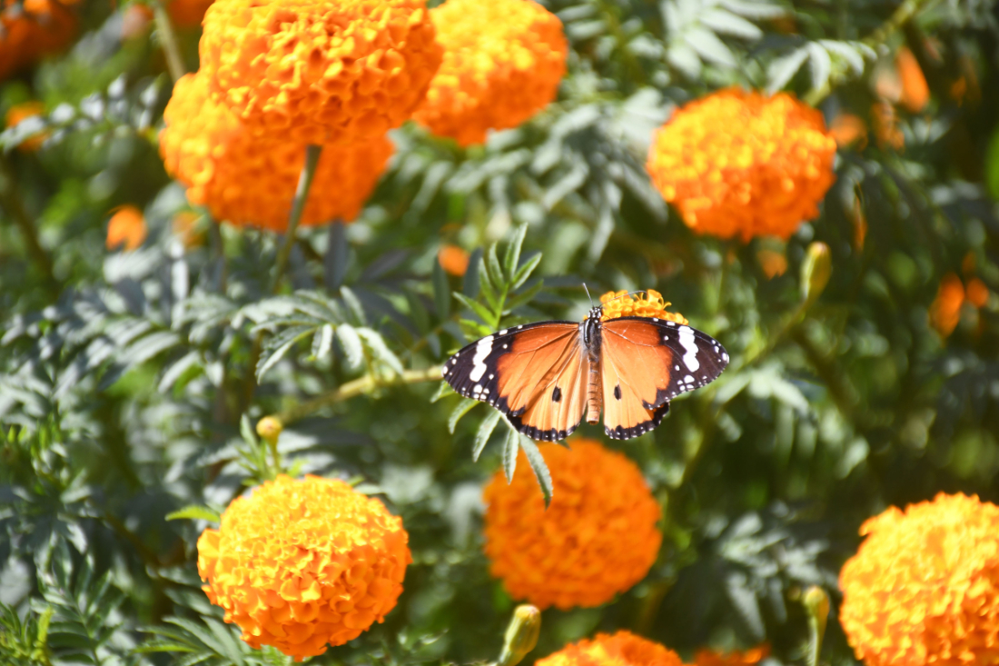 दाङको घोराही उपमहानगरपालिका–३ स्थित झिङनीमा सयपत्री फूलको रस चुस्दै पुतली। तस्बिर: रासस