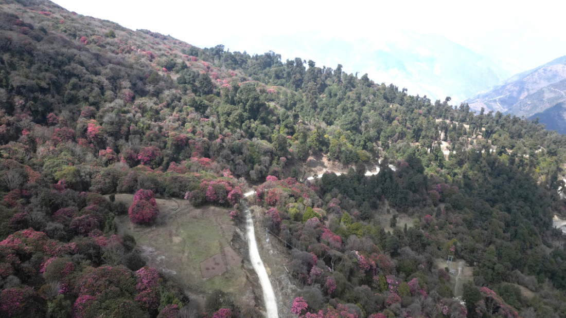 म्याग्दीको अन्नपूर्ण गाउँपालिका–६ स्थित घोडेपानीमा ढकमक्क फुलेको लालीगुराँस । वसन्त याममा घोडेपानीको पाखामा फुलेको लालीगुराँसले पर्यटकलाई आकर्षित गरेको छ।