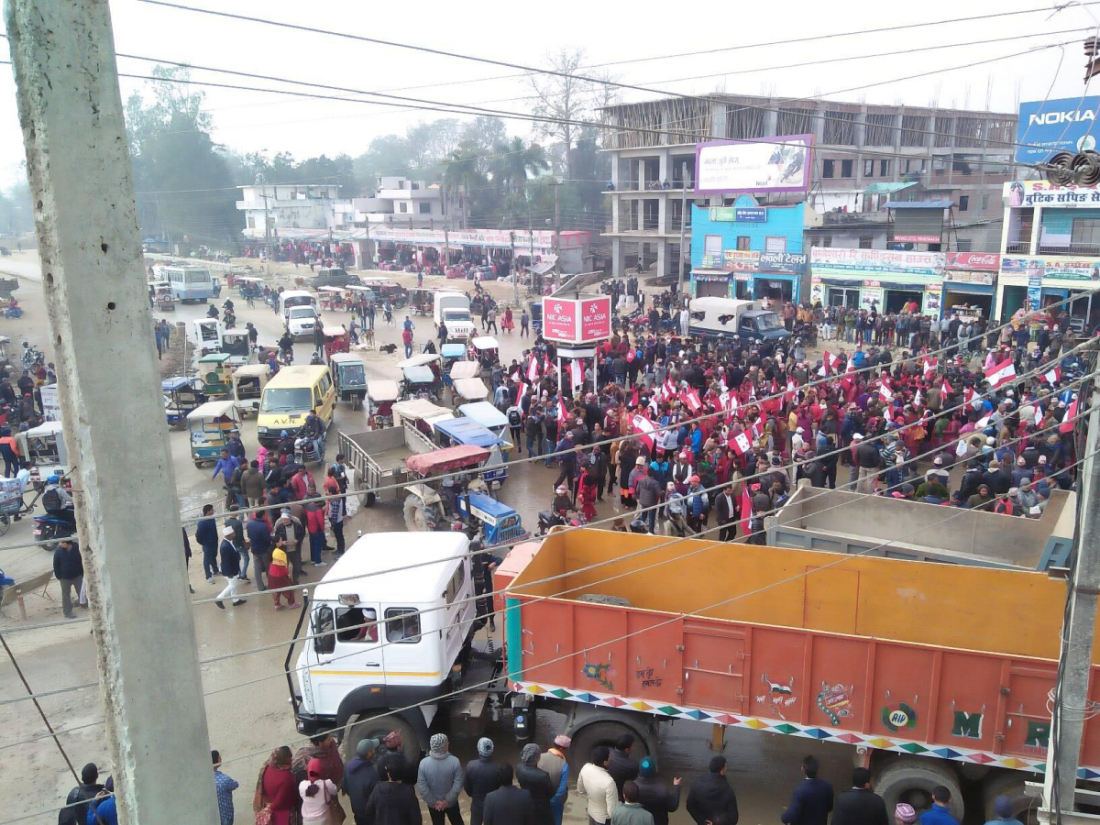 प्रदर्शनको तयारी गर्दा सडक जाम