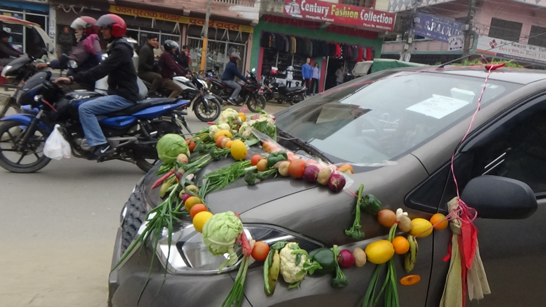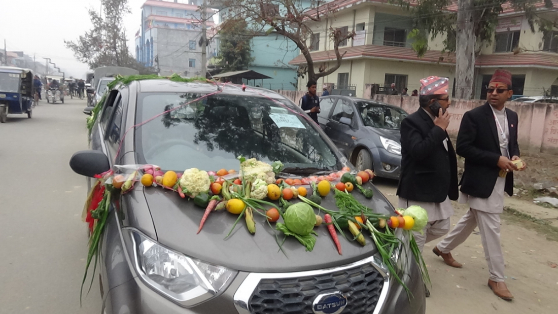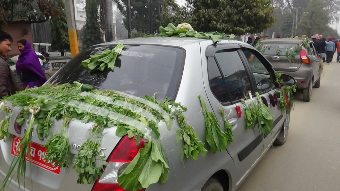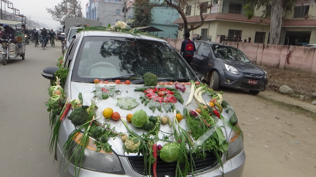 थरि थरि तरकारीले सजाईएका जीपहरु