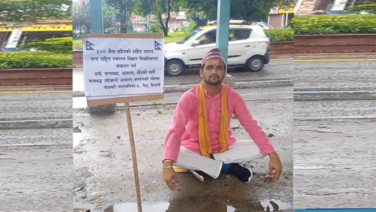 गेटामा छ सय शय्या अस्पतालको माग गर्दै माइतीघर मण्डलामा एक युवा मौन आन्दोलनमा