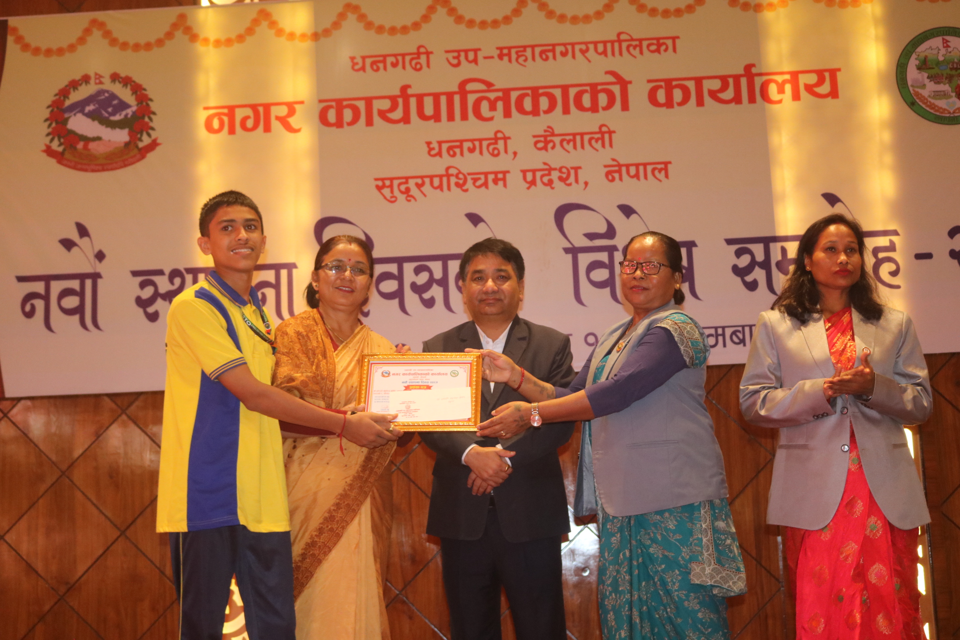 सोमाबार आयोजित धनगढी उपमहानगरपालिको ९ औं स्थापना दिवसको अवसरमा सामुदायिक विद्यालय तर्फ धनगढी-५ हसनपुरको पञ्चोदय माध्यमिक विद्यालय र संस्थागत तर्फ धनगढी-८ क्याम्पस रोडको एरिष्टो माध्यमिक विद्यालयलाई जनही नगद ५० हजार र प्रशंसापत्रसहित सम्मान गरिएको हो।