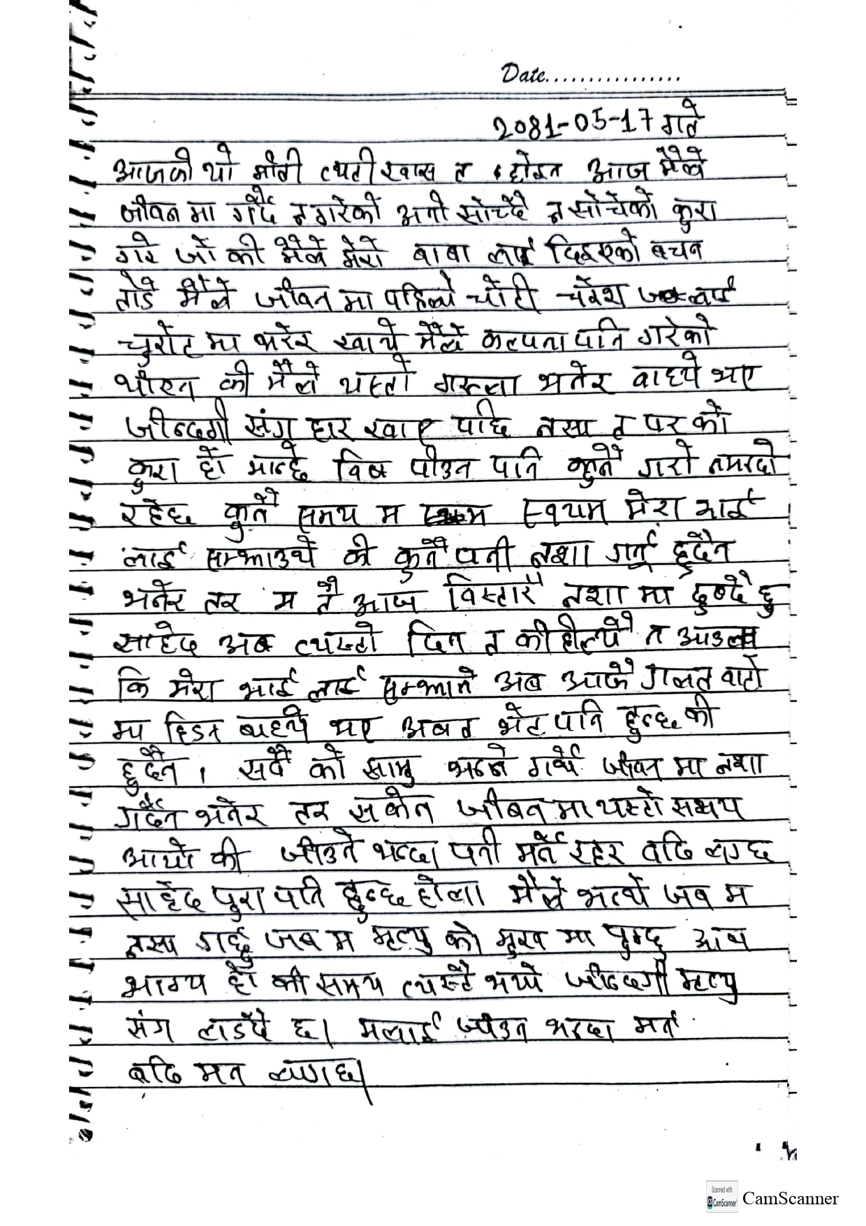 दीपकले नोटमा आफू पनि लागुऔषध सेवन गर्न थालेको उल्लेख गरेका हुन्। भाइसँग पनि भेट नहुने उनले बताएका छन्। उनले अगाडी नोटमा भाइसँग भेट नहुन पनि सक्ने उल्लेख गरेका छन्। लेखेका छन्, ‘अबत भेटपनि हुन्छकी हुँदैन, सबैको सामु भन्ने गर्थे जीवनमा नसा गर्दैन भनेर। तर, सेकन्। जीवनमा यस्तै समय आयो की, जीउने भन्दा पनि मर्न रहर बढी लाग्छ। सायद पूरा पनि हुन्छ, होला।’ दीपकको नोटमा उल्लेख भएका शब्द र विषय अनुसार उनको विष सेवन गरेर मर्ने योजना तय भएको देखिन्छ। जीवनदेखि हरेस खाएको भावमा उनले लेखेका छन, ‘मैले भन्थे, जब म नसा गर्छु, तब म मृत्युको मुखमा पुग्छु। आज भाग्य हो की समय ? त्यस्तै भयो। जिन्दगी मृत्युसँग लड्दैछ। मलाई जिउन भन्दा मर्न बढी मन लाग्दैछ। मर्न त मर्छु होला। मसँग जिन्दगीसँग लड्न सक्ने क्षमता नै छैन। र सक्दैन पनि। आजसम्म जीउनको लागि पनि एक मात्र व्यक्ति, जो मेरी स्वास्नी हो। सँगै जिउने, सँगै मर्ने कसम खाएर सबै कुरा त्यागरे, जिन्दगीको सुरुवात गरेका हामी र हाम्रो त्यो प्रेम सफल हुन सकेन।’