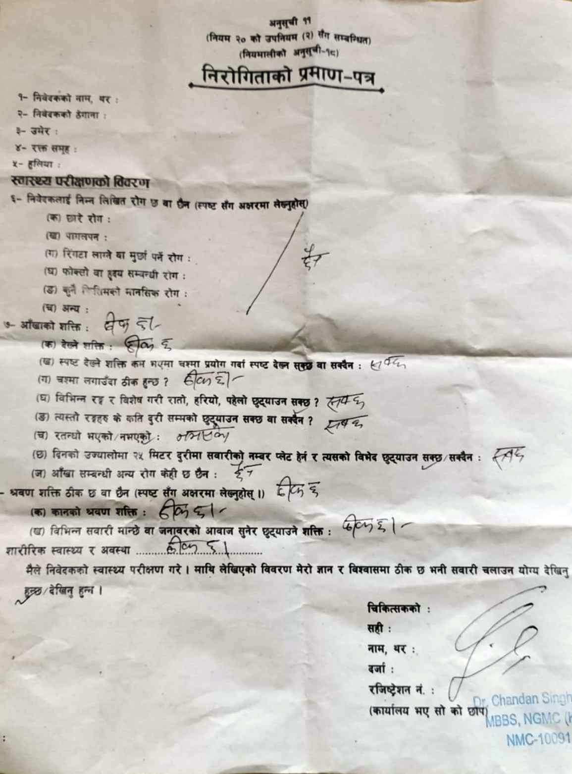महेन्द्रनगरमा स्वास्थ्य परीक्षण नगरी २ सयमा निरोगिताको प्रमाणपत्र