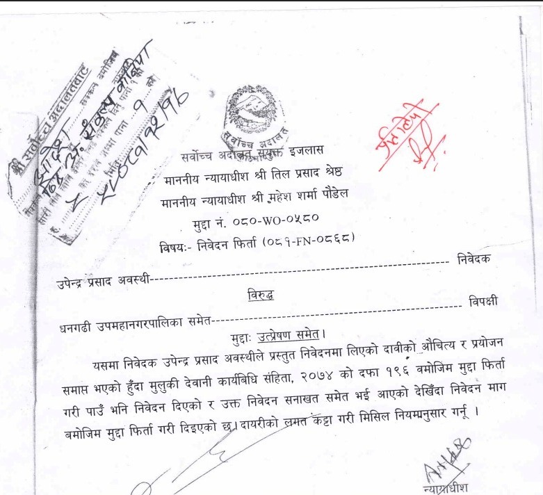 धनगढीको जग्गा प्लटिङ सम्बन्धी कार्यविधि विरुद्धको सर्वोच्चमा दर्ता मुद्दा फिर्ता