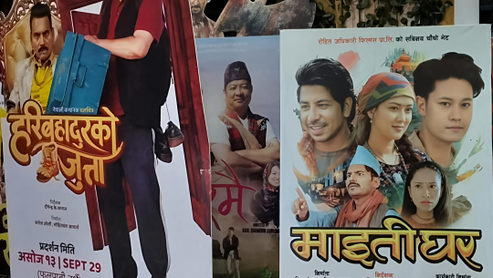 काठमाडौँ : दसैँको अवसर पारेर फूलपाती अर्थात् यही असोज १३ गतेदेखि तीन चलचित्र ‘हरिबहादुरको जुत्ता’, ‘माइतीघर’ र ‘बलिदान’ नेपालभर प्रदर्शनमा आएका छन्। दसैँको बिदा भए पनि तीन वटै चलचित्रले घरेलु बजारमा अपेक्षाकृत व्यापार भने गर्न सकेका छैनन्।