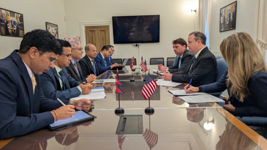 मङ्गलवारमात्र मन्त्री खनालले अमेरिकाका उपव्यापार प्रतिनिधि व्रायन स्वीजरसँग भेटघाट गरेका थिए। उक्त भेटको अवसरमा द्विपक्षीय व्यापार र करका नीतिहरूका बारेमा छलफल भएको थियो। उक्त छलफल उपयोगी भएको यहाँस्थित राजदूतावासले जनाएको छ। उक्त भेटका अवसरमा अमेरिका तथा नेपालका अधिकारीहरूको सहभागिता रहेको थियो।