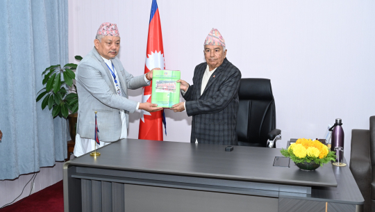 राष्ट्रपति पौडेलसमक्ष राष्ट्रिय प्राकृतिक स्रोत तथा वित्त आयोगको प्रतिवेदन पेस