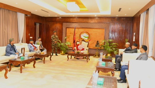 काठमाडौँ: प्रधानमन्त्री सुशीला कार्की प्रमुख तीन राजनीतिक दलका शीर्ष नेतासँग छलफलमा जुटेकी छिन्। आज दिउँसो प्रधानमन्त्री निवास बालुवाटारमा केहीबेर अघि छलफल सुरु भएको हो।
