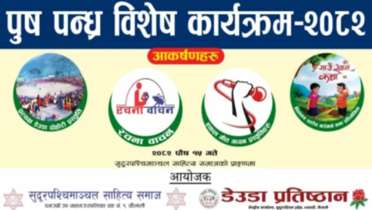 कार्यक्रममा देउडा समूह नृत्य, स्रष्टा वाचन, खुला कविता वाचन तथा बाल कथा वाचनजस्ता आकर्षक प्रस्तुतिहरू रहनेछन्। स्थानीय कला, भाषा र मौलिक संस्कृतिको संरक्षण तथा प्रवद्र्धन गर्ने उद्देश्यले विगत वर्षहरूदेखि पुस १५ मनाउँदै आएको आयोजकले जनाएको छ।