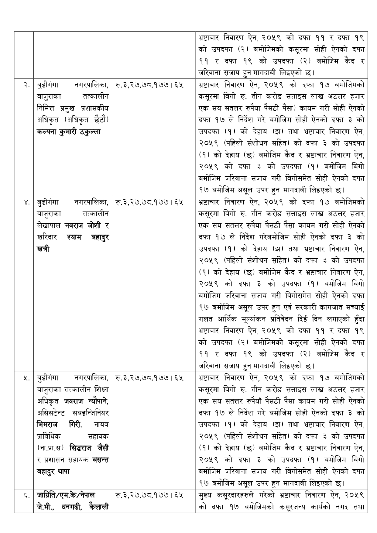 यस प्रकरणमा अख्तियारले धनगढीस्थित जागृति/एमके/नेपाल जेभी, उक्त जेभीका प्रबन्ध सञ्चालक पुष्कर रोकाया र आधिकारिक प्रतिनिधि सुरतबहादुर शाहविरुद्ध पनि कैद र बिगो मागदाबी गरेको छ ।