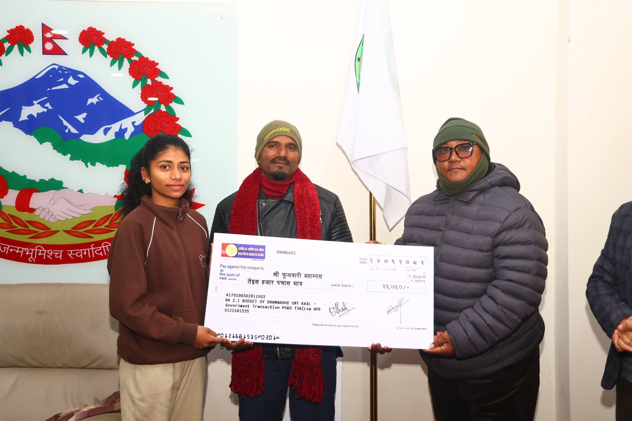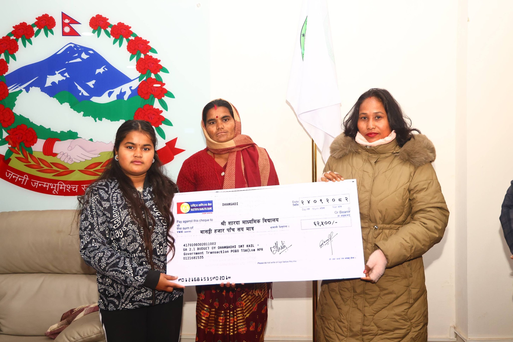 धनगढी उपमहानगरपालिकाद्वारा दलित छात्रालाई उच्च शिक्षा हासिल गर्न ‘टीकाराम पार्की छात्रवृत्ति’ हस्तान्तरण