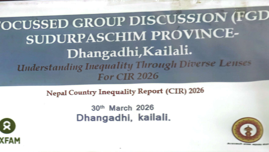 धनगढीः गैर सरकारी संस्था महासंघ नेपालको आयोजनामा सुदूरपश्चिम प्रदेशमा असमानता प्रतिवेदन २०२६ को सन्दर्भमा चैत्र १६ र १७ गते दुई दिने परामर्श तथा कार्यशाला कार्यक्रम सम्पन्न भएको छ।