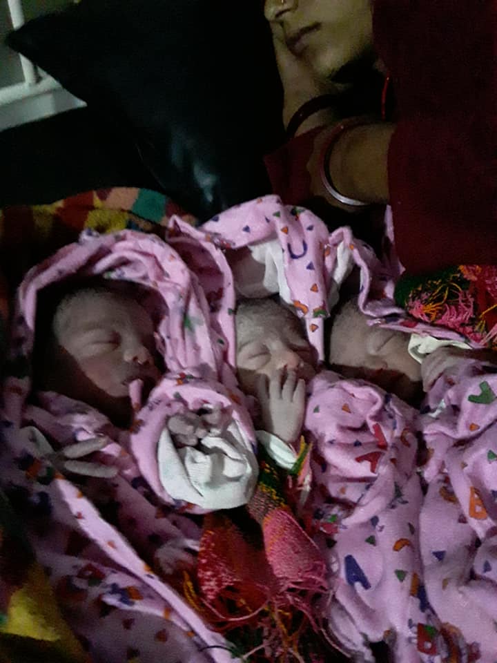 कात्र्तिकमा प्रसुती हुनुपर्ने धामीले एक महिना अघि शिशु जन्माएकी हुन्। धामीका एक, छ र अर्को तीन वर्षका छोरी छन्। नौगाड सुरक्षित प्रसूति गृहमा तीन बच्चा जन्मिएको यो पहिलो घटना हो। तीनै छोरीको तौल औसतमा कम भएपछि थप उपचारका लागि नेपालगञ्ज पठाईएको हो। पहिलो पटक जन्मिएकी छोरीको दुई किलोग्राम र दुई छोरीको एक किलो २०० ग्राम मात्र तौल रहेको स्वास्थ्य चौकीले जनाएको छ।