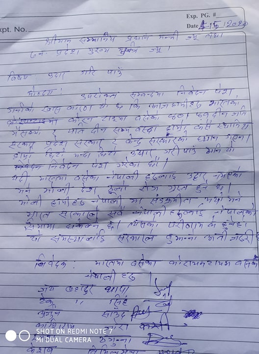 भारतको पलियाबाट प्रधानमन्त्रीलाई पत्रः हाम्रो उद्धार नभए देशले परिणाम भोग्नेछ