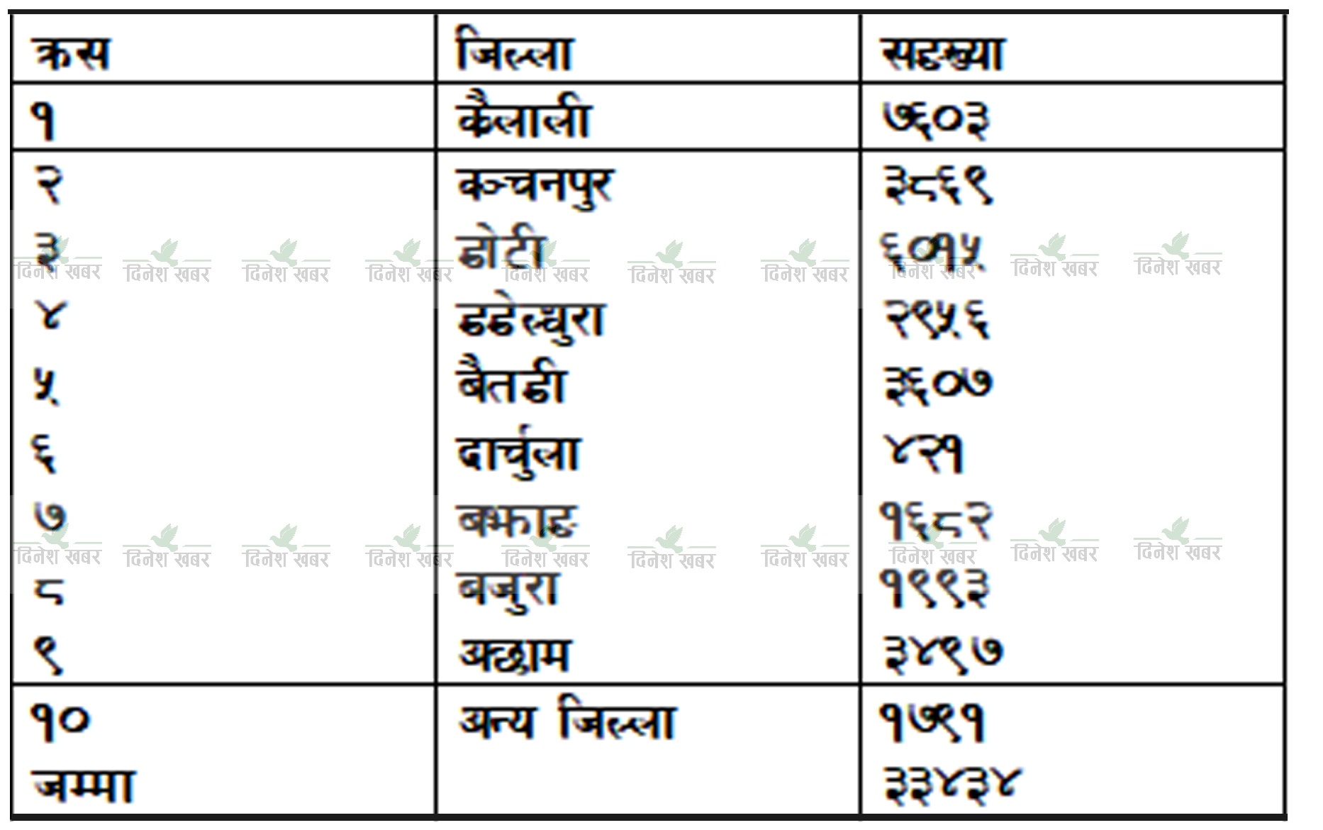 त्रिनगरबाट उद्धार गरिएका ३३४३४ कुन जिल्लाका कति ?