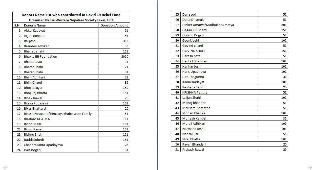 यी हुन सुदूरपश्चिम समाज टेक्सासमा रकम सहयोग गर्नेहरु: