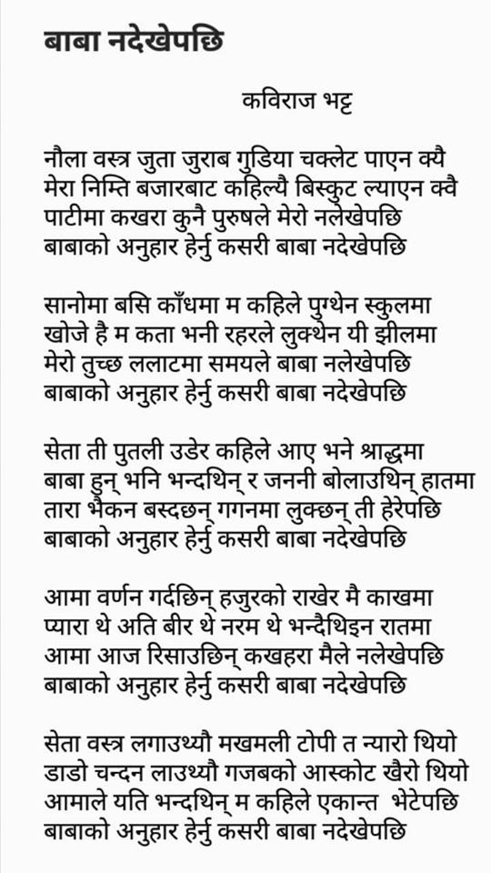 बाबा हुन् भनि भन्दथिन् र जननी बोलाउथिन् हातमा