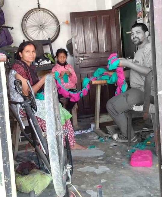 परिवारसहित दिनरात नभनी उनी सबैका लागि मास्क बनाउन लागे।