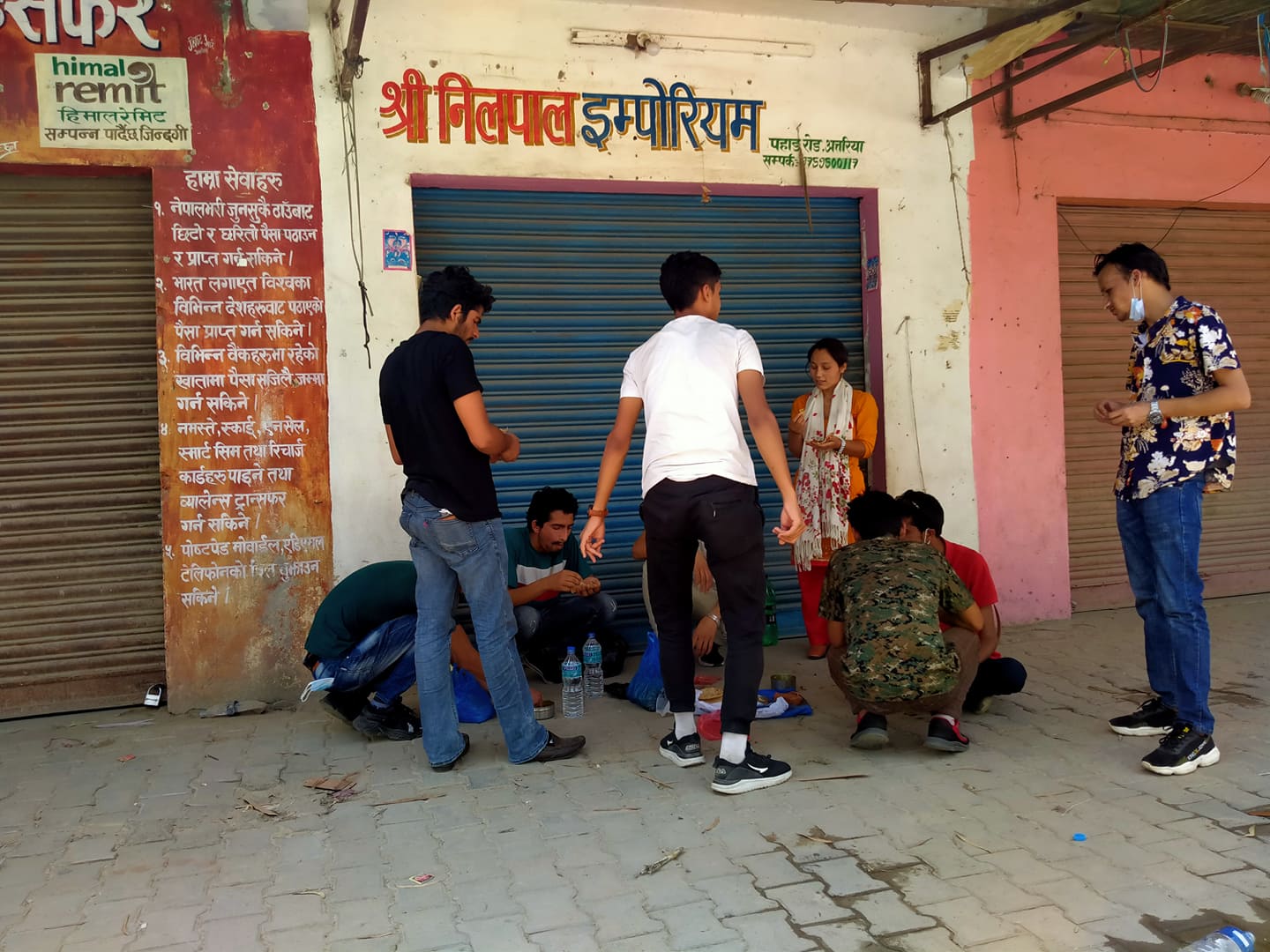 कोरोना भाइरस सङ्क्रमण कम गर्न लगाइएको निषेधाज्ञाका कारण सबै होटल तथा पसलहरु बन्द छन्। बाटोमा खान केही नपाइने भन्दै उनीहरु कोठाबाटै खानेकुरा पकाएर बोकेर ल्याएका थिए। मंगलबार दिउँसो अत्तरिया पुगेका उनीहरु चर्को घाम छेकिने एक पसल अगाडी गोलो घेरा लगाएर मीठो मानेर खाइरहेका थिए।