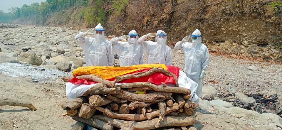 संक्रमित मृतकको शव व्यवस्थापनमा खटिएको भवानीदल गणः २ सय बढी शव व्यवस्थापन, तर छोएन कोरोनाले (भिडिओसहित)