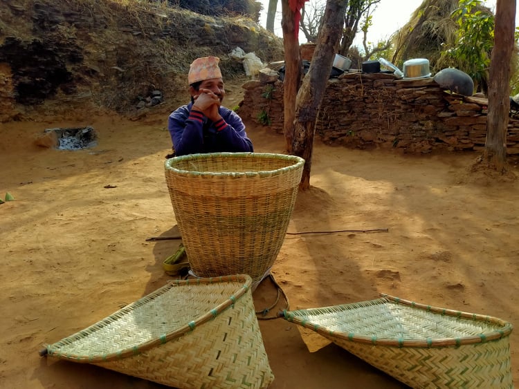 उनले भने, “५/६ महिना भारतमा बिताए, तर भने जस्तो कमाई भएन। बाबाले निङ्गलाको काम गर्थे। भारतबाट फर्केर म पनि उनीसंगै सिक्न थाले र बेच्न पनि गाउँघरतिर जान थाले। १ डोको र सुप्पो बुनेर तयार गर्न दुई दिन लाग्छ।” उनले एक महिनामा कम्तिमा ३०/३५ डोको सुप्पो अर्थात् अन्न राख्ने निगालोको टोकरी (स्थानीय भाषामा छापरो अर्थात छाप्रो) बुन्ने गरेको बताए। “आफ्नो खेत छैन बाहीरबाट निगालो, बाँस किनेर बुन्छुँ उनले भने।”