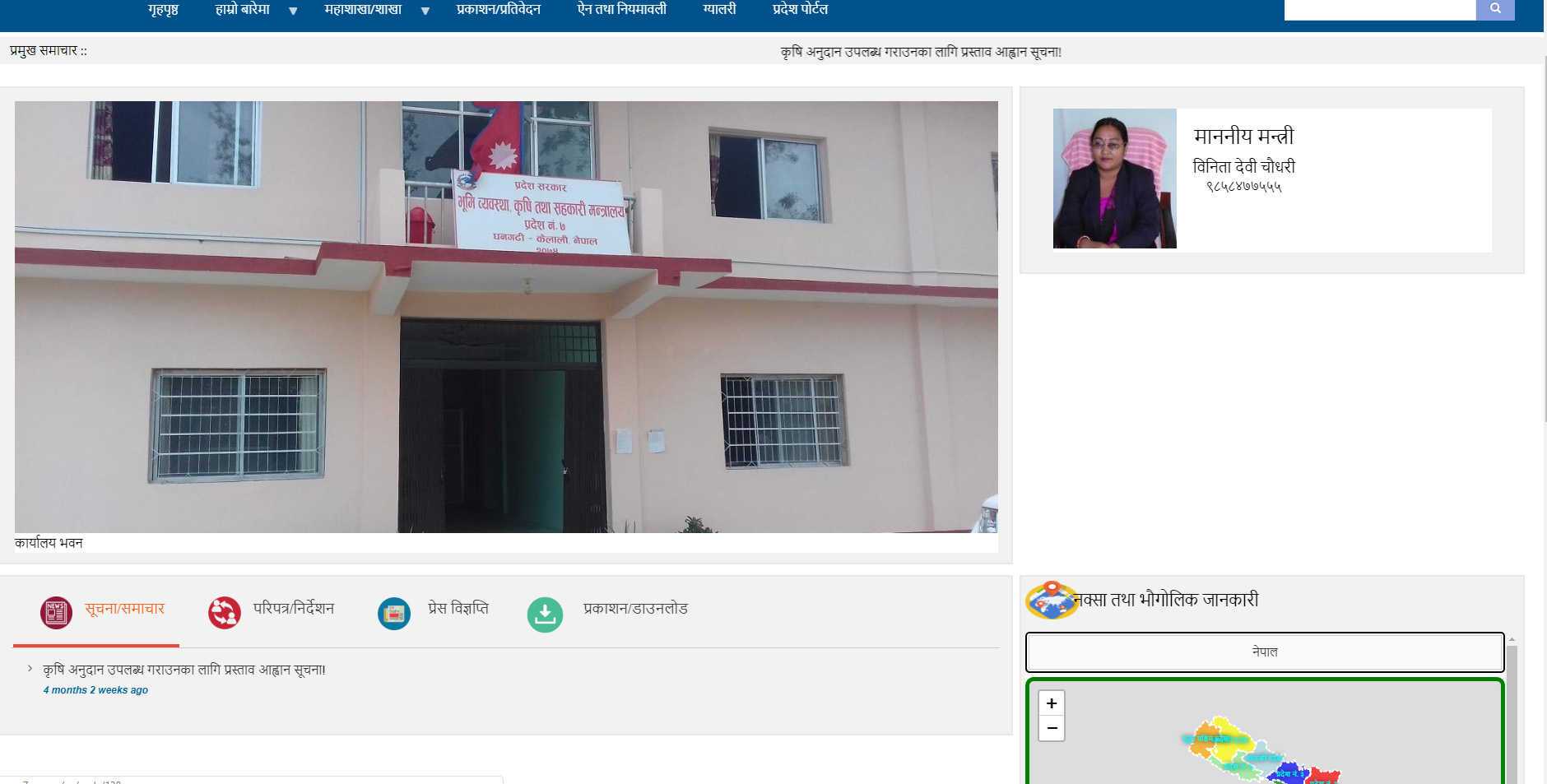 केहि मन्त्रालयहरुले कर्मचारीको नाम अपडेट गरेका छन तर सरुवा भएको कर्मचारीको नाम हटाउने र थप्ने कार्य पनि गरिएको छैन्। अझ मुख्यमन्त्री तथा मन्त्री परिषदको कार्यालयले त नौँ महिनाको अवधीमा मन्त्रीपरिषद बैठकमा भएका कुनै पनि निर्णय आफ्नो वेवसाईटमा राखेको छैन्। तर मुख्यमन्त्री तथा मन्त्री परिषद कार्यालयका सचिव यज्ञप्रसाद भट्टराईले वेवसाईट अपडेट गरिरहने भएपनि केही ढिलो भएको जिकिर गरे। तर प्रदेशका मुख्यमन्त्री र मन्त्रीहरुले औपचारिक सभा समारोहमा सहभागिता जनाएका तस्बिरहरु भने वेवसाईटहरुमा राखिएको पाईएको छ। प्रदेशको भुमी व्यवस्था कृषि तथा सहकारी मन्त्रालयले पनि विगत चार महिना देखी वेवसाईटमा कुनै सूचना तथा जानकारी नै राखेको छैन्।
