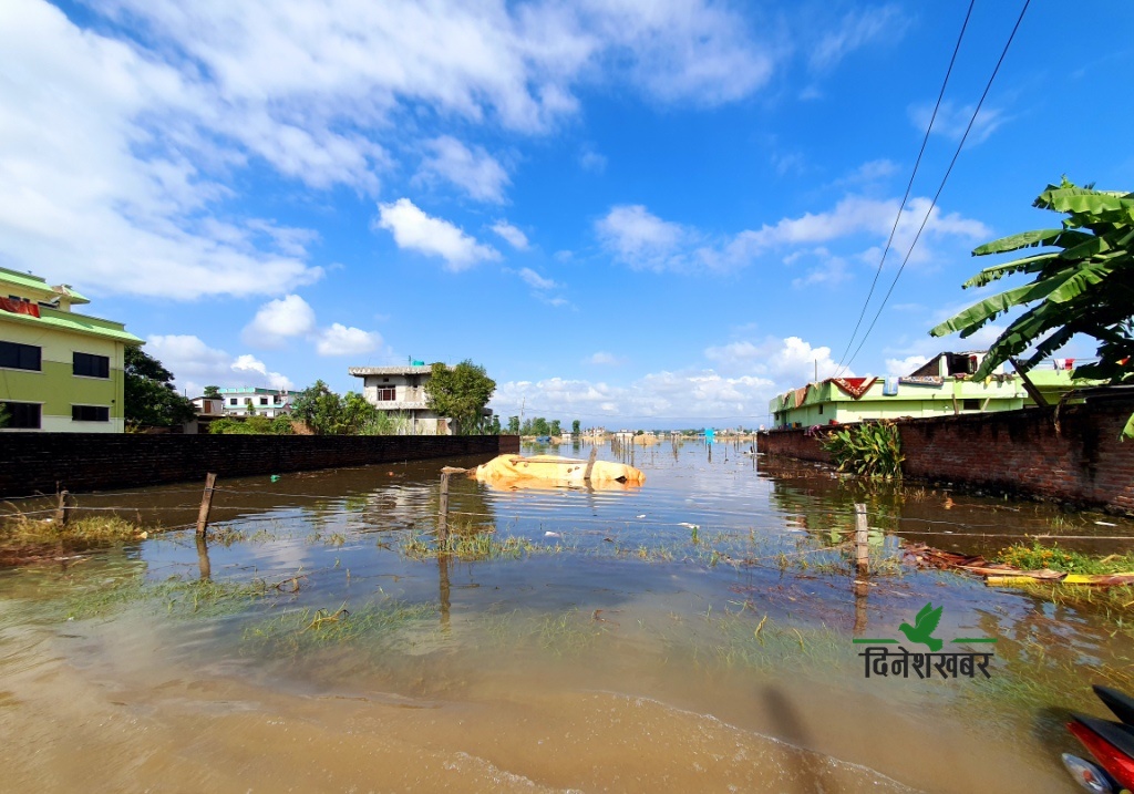 वर्षा रोकिएपछि बुधबार र बिहीबार घाम लागेपनि धनगढीको वडा नम्बर २, ३, ४, ५, ७, ८, ९ तथा १३ का विभिन्न बस्ती र टोलका घर तथा पसलभित्र पसेको पानी सुकेको छैन। अहिले पिच सडकमा नहर बगे जस्तै पानी बगिरहेको छ।