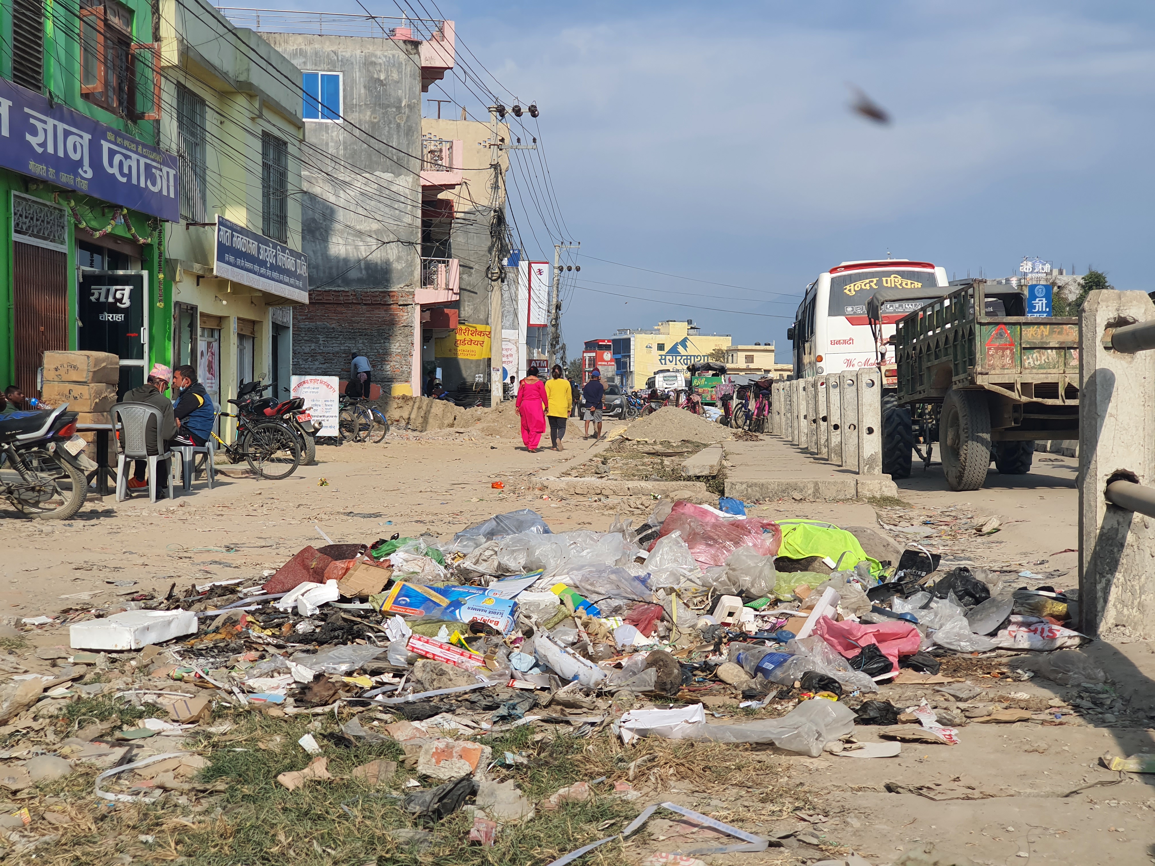 धनगढीको ६ लेन सडक छेउछाउमा फोहरै फोहर