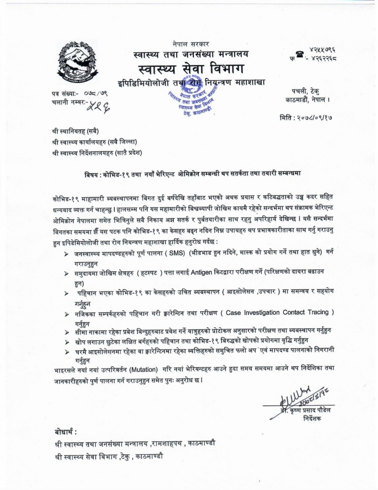 ओमिक्रोन फैलिन नदिन थप पूर्वतयारी गर्नूः महाशाखा