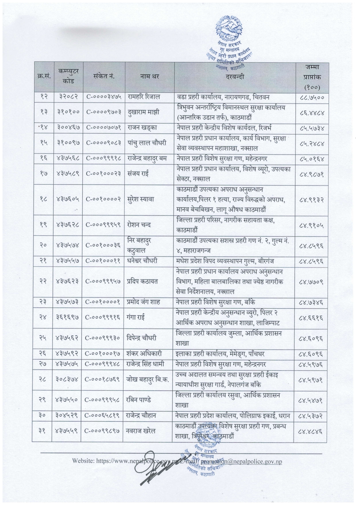 नेपाल प्रहरीका ४६ जना सई बढुवा (नामसहित)