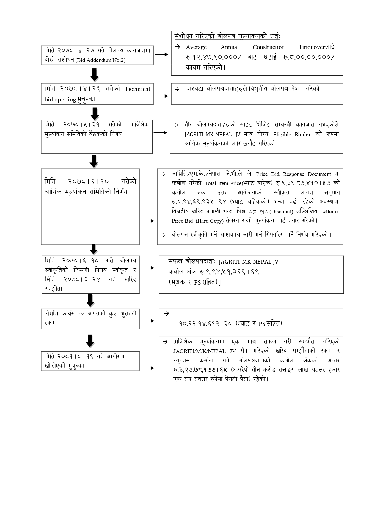 अख्तियार दुरुपयोग अनुसन्धान आयोगका अनुसार ठेक्का प्रक्रियामा सुरुदेखि नै मिलेमतो गरिएको पाइएको छ । प्रचलित कानुनविपरीत लक्षित बोलपत्रदातालाई ठेक्का दिन योग्यता शर्त तथा मापदण्ड बदनियतपूर्वक परिवर्तन गरिएको र बढी कबोल गर्ने बोलपत्रदातालाई स्वीकृत गरेर नगरपालिकालाई ठूलो आर्थिक हानी नोक्सानी पुर्याइएको आयोगको ठहर छ ।